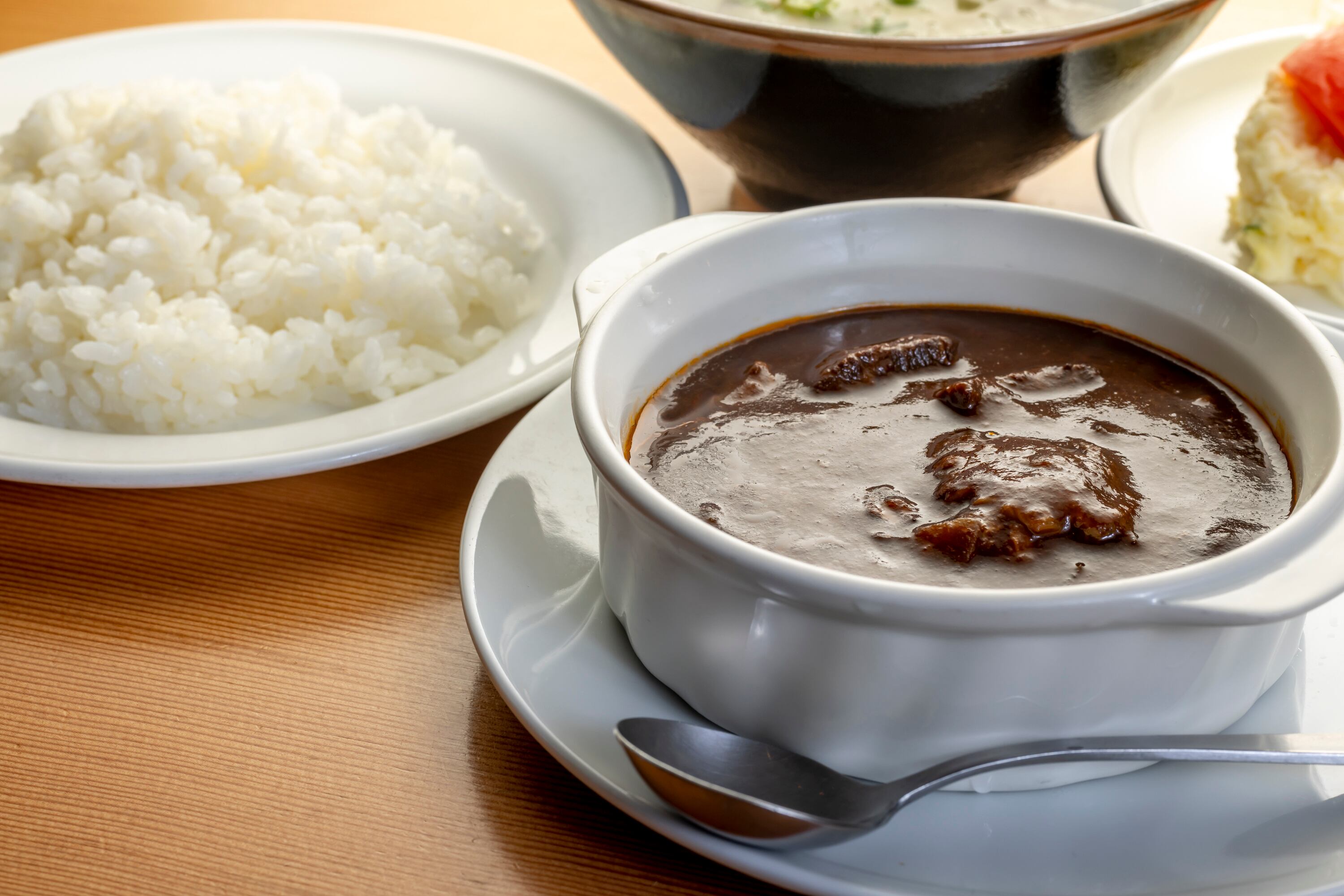 ・牛バラ肉と炒め玉ねぎ、にんじんなどをコク深いブラウンルウと赤ワインでじっくり煮込みました